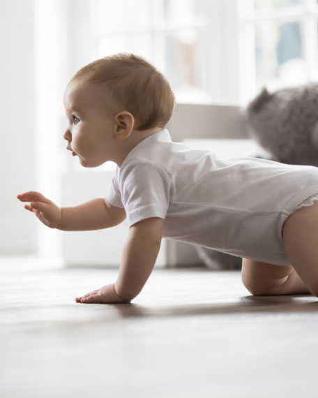 Anders als das Gehör entwickelt sich das Sehvermögen recht langsam. "Im dritten Trimester kann Ihr Baby zum Beispiel schon im Mutterleib die Augen öffnen und zwischen hell und dunkel unterscheiden", sagt Dr. Haddad. "Ihr Sehvermögen wird jedoch erst um den ersten Geburtstag herum vollständig entwickelt sein." Ein Grund dafür ist, dass das Gehirn Zeit braucht, um die empfangenen visuellen Signale zu verarbeiten, um Farben zu unterscheiden und vor allem, um Bewegungen zu verfolgen. In den ersten Monaten sollten Sie ganz nah an Ihr Baby herantreten und in seiner Nähe bleiben, denn es kann seine Augen am besten aus etwa 20 Zentimetern Entfernung fokussieren. Auch in der Nähe zu bleiben gibt ihnen die Möglichkeit, Sie zu berühren und die Informationen aus verschiedenen Sinnen zu kombinieren. Sie können dann Ihre Stimme wahrnehmen und Ihre Haare und Ihr Gesicht sehen.