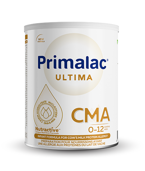 Primalac Ultima CMA est une formule à base de protéines extensivement hydrolysées, adaptée aux nourrissons de 0 à 12 mois souffrant d’allergie aux protéines de lait de vache.